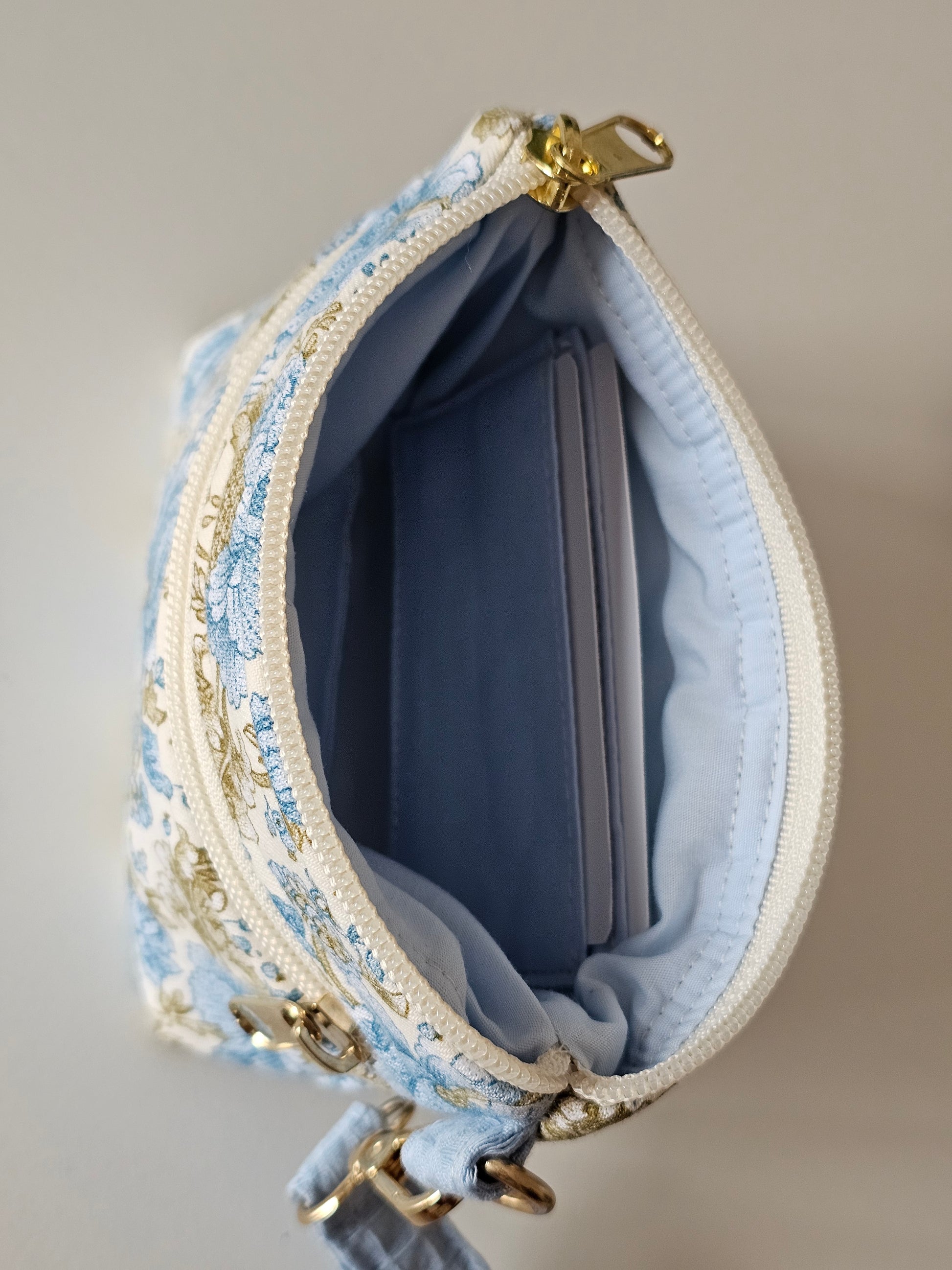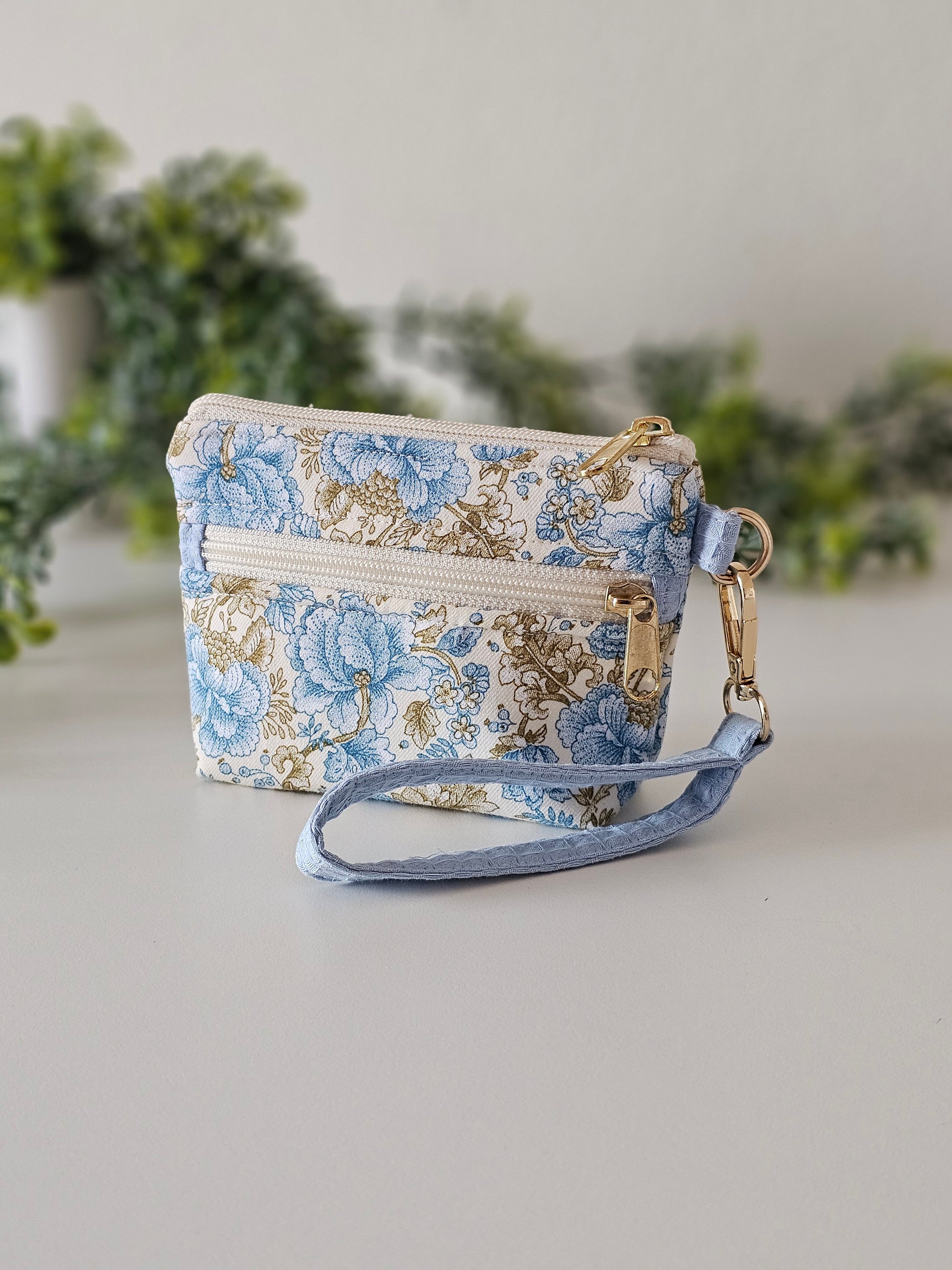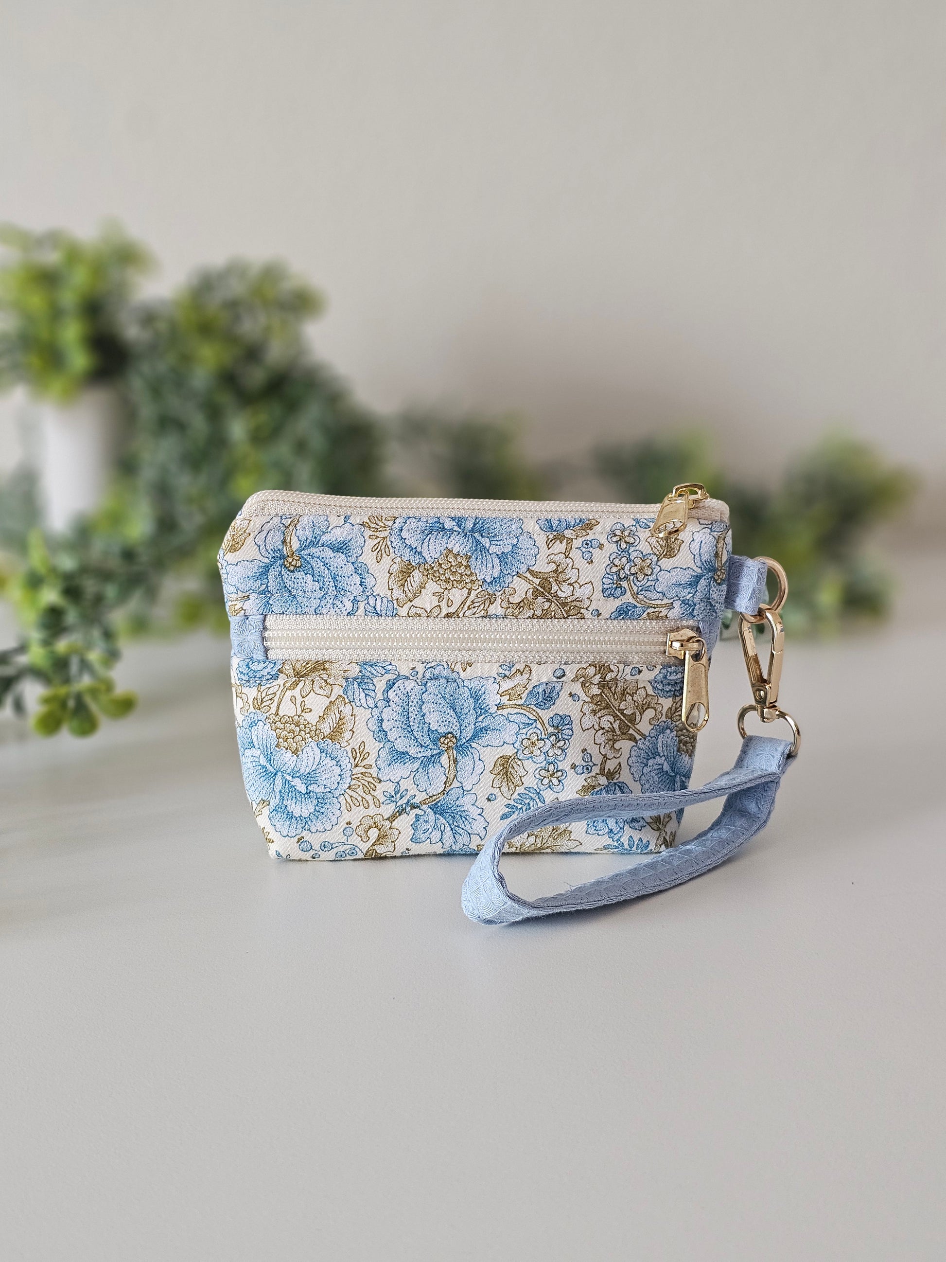 Lleva contigo solo lo esencial con este monedero compacto y funcional, perfecto para organizar tus tarjetas y dinero de forma práctica y con estilo. Su diseño floral en tonos azules y dorados le aporta un toque clásico y sofisticado, ideal para combinar con cualquier look.
